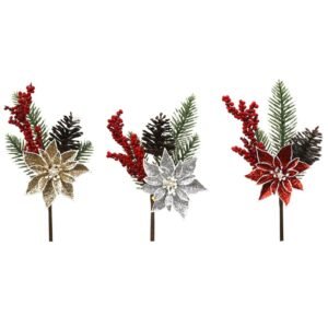 21Cm Poinsettia Pick Red